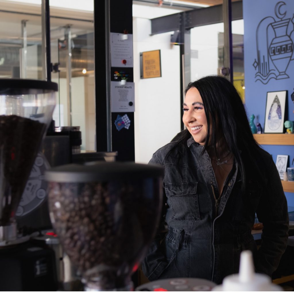 In addition to the coffee shop’s storefront, Azure often partners with other local businesses. For example, she collaborated with Carolyn at Intimi for Ladies Night and Allie at Blessed Be Tea for Witches Night. “Using this grant money I really want to be able to do more in the community and not be so tied down to our physical storefront,” said Azure. She plans to use the money to purchase a coffee cart that will allow her to do special events in the community.